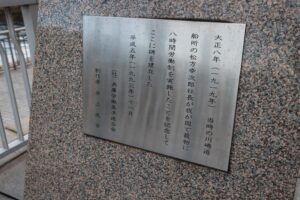 「大正八年 当時の川崎造船所の松方幸次郎社長が我が国で最初に八時間労働制を実施したことを記念してここに碑を建立した」とあります。