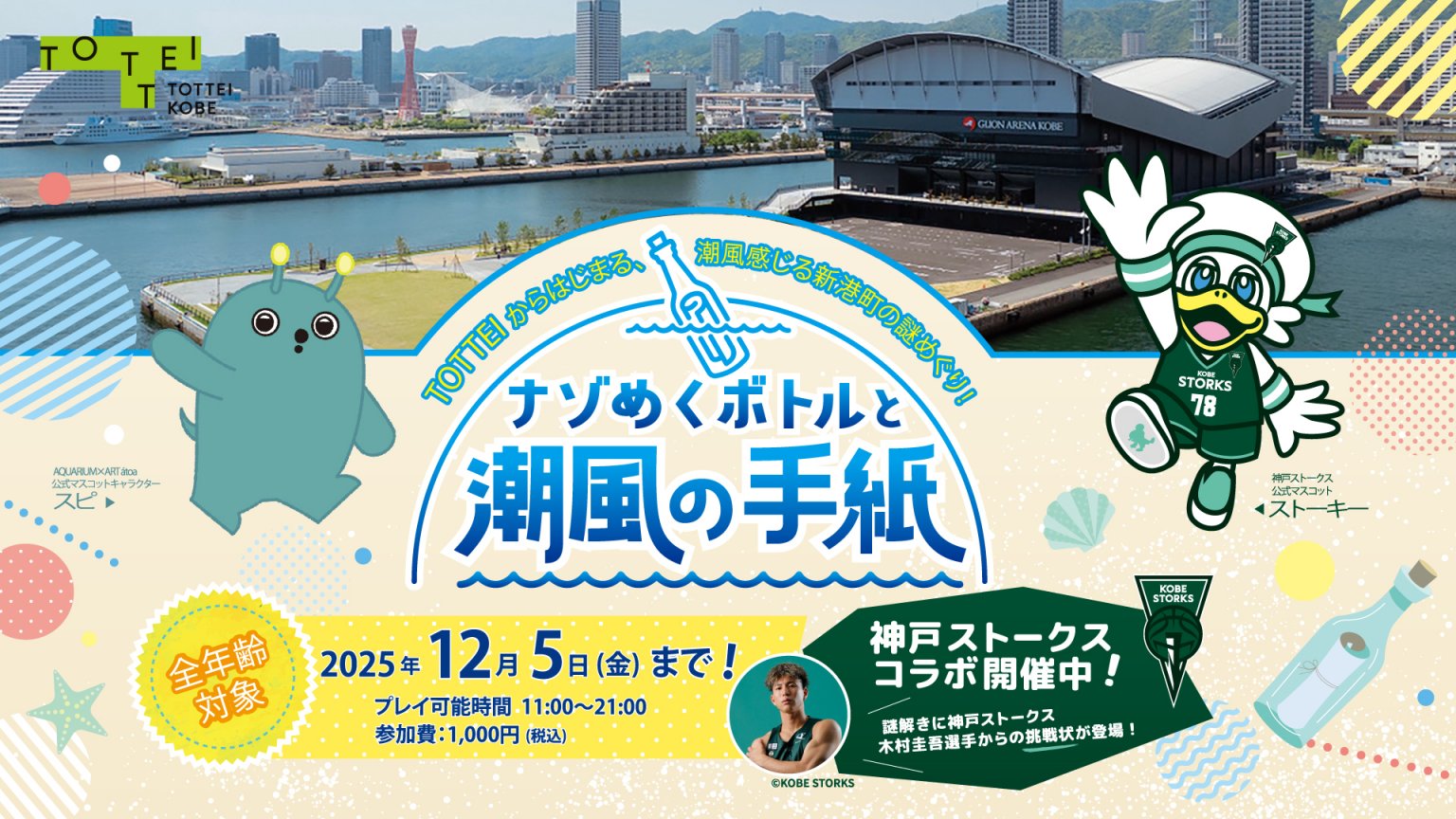プロバスケットボールチーム「神戸ストークス」のマスコットも登場し、エリア全体の魅力を体感できる内容です。