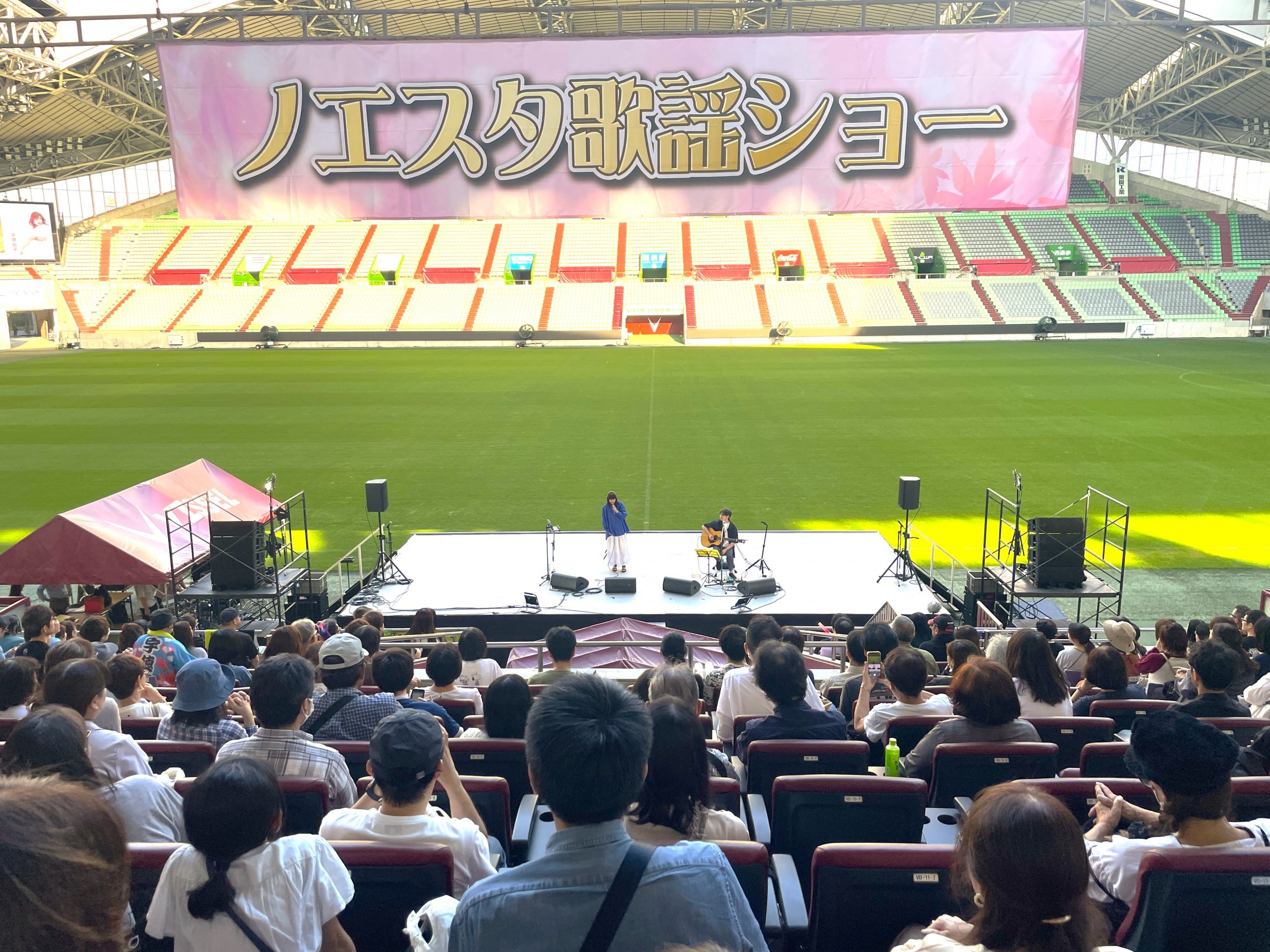 スタジアム内ではアーティストによる歌謡ショー、芝生広場ではサッカー教室やヨガ体験を実施。