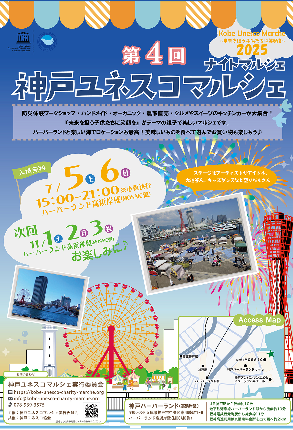 神戸の海辺ににぎわいを届ける「神戸ユネスコチャリティーマルシェ」が、2025年春にハーバーランド・高浜岸壁で開催されます。