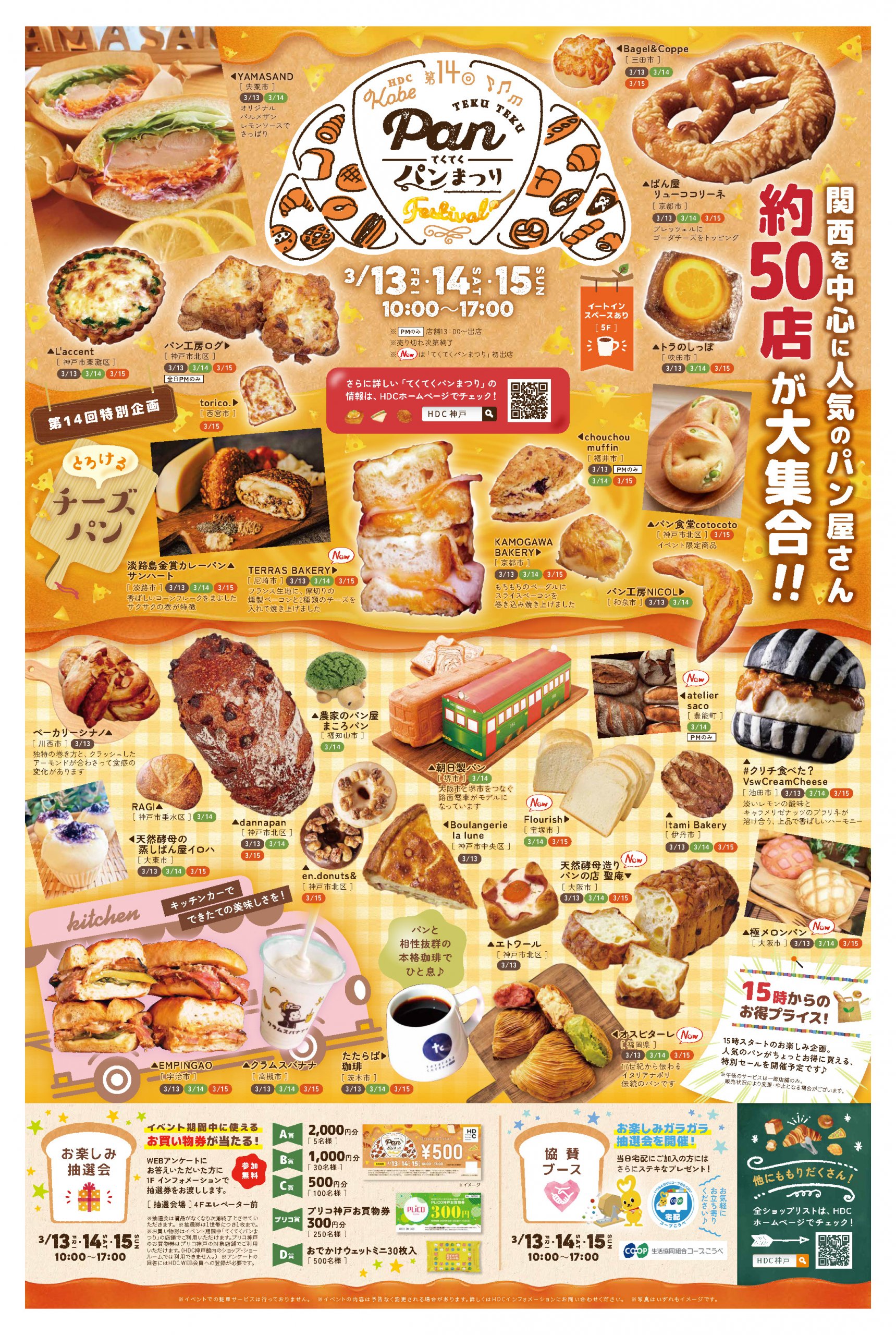 開催中、てくてくパンまつりで使えるお買い物券が当たる「お楽しみ抽選会」も実施されます。