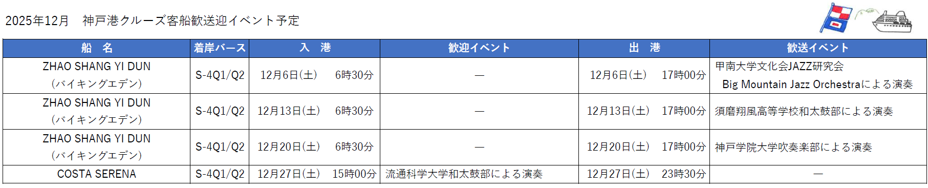 ※イベント予定及び入出港スケジュールは、予告なしに変更・中止することがあります。予めご了承ください。