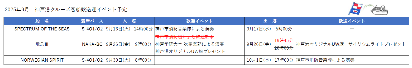 ⚓9/26「飛鳥Ⅲ」の出港時間が変更になりました。(2025.9.3更新)