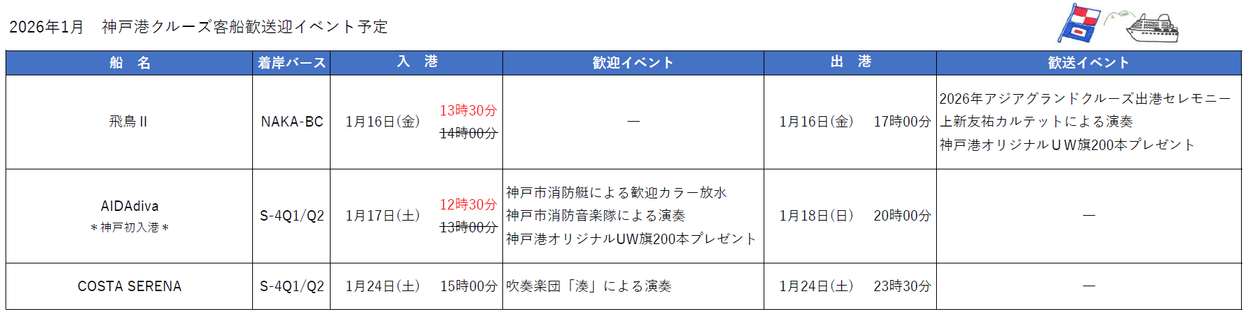 ⚓1/16「飛鳥Ⅱ」の入港時間が変更になりました。(2026.1.16更新)