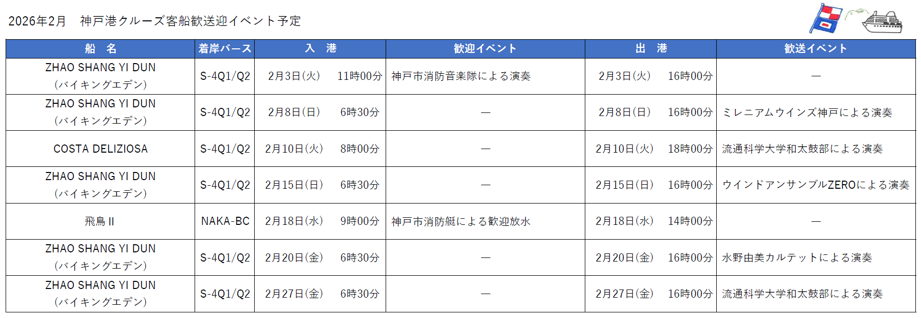 ※イベント予定及び入出港スケジュールは、予告なしに変更・中止することがあります。予めご了承ください。