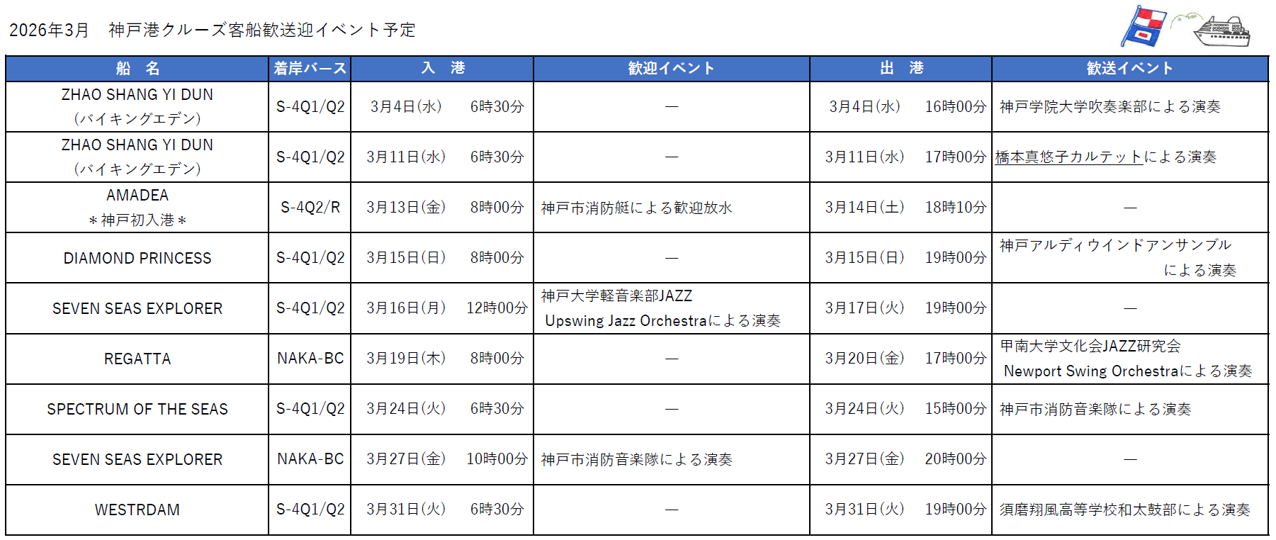 ※イベント予定及び入出港スケジュールは、予告なしに変更・中止することがあります。予めご了承ください。